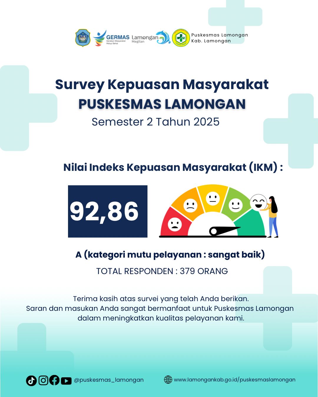 Puskesmas Lamongan telah melaksanakan Survey Kepuasan Masyarakat Semester 2 Tahun 2025 dengan hasil: