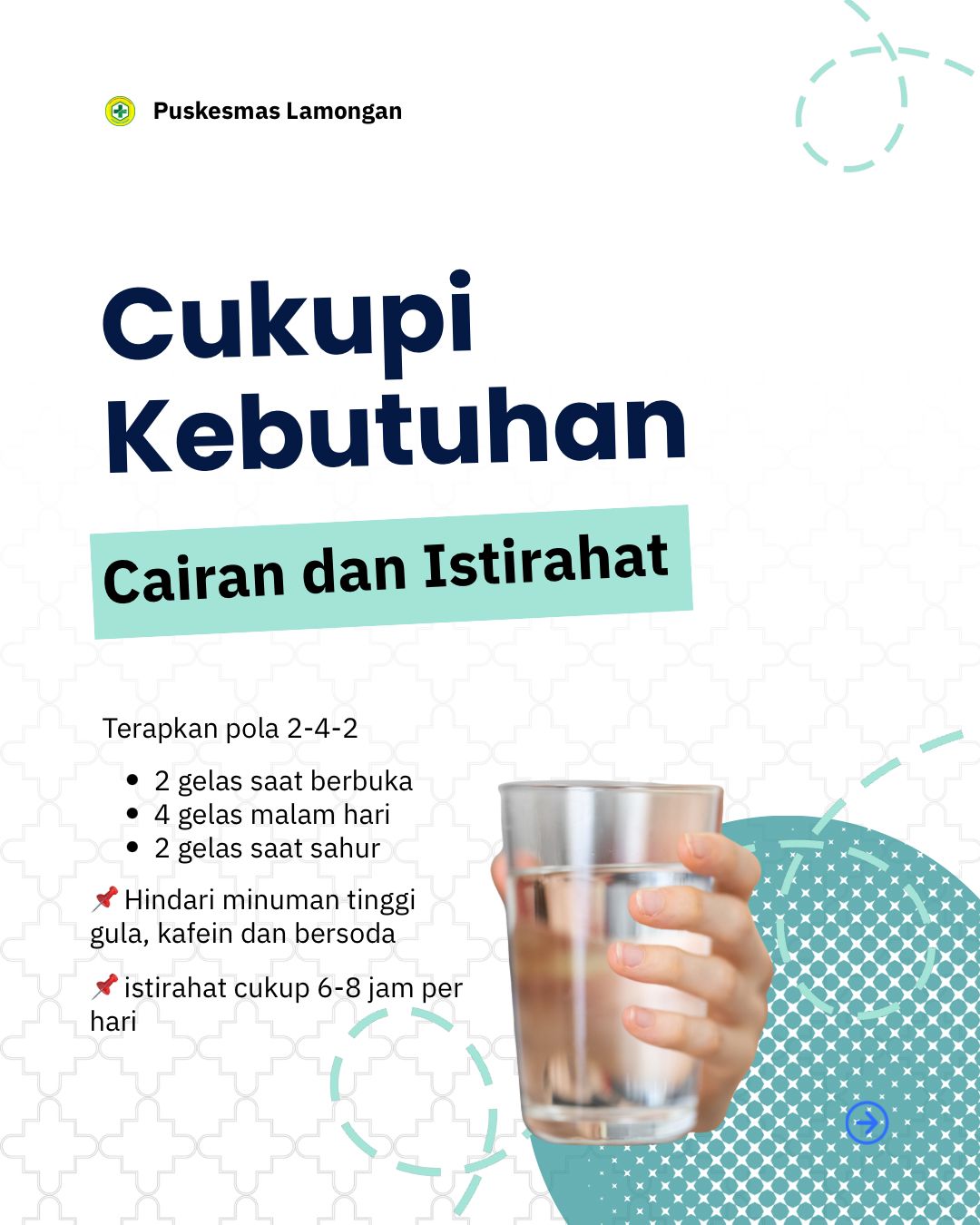 ✔️ Cukupi kebutuhan cairan dan istirahat